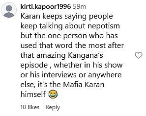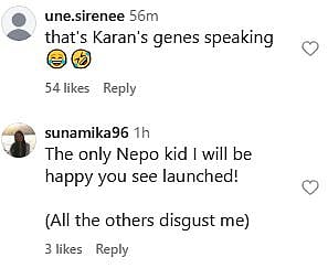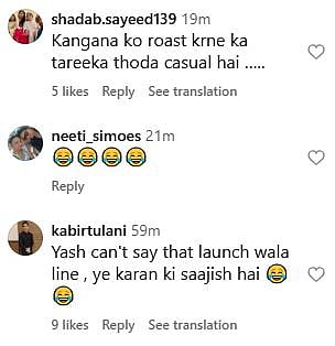 A netizen commented, "The only Nepo kid I will be happy you see launched! (All the others disgust me) (sic)." Another Instagram user wrote, "Kangana ko roast krne ka tareeka thoda casual hai (sic)." One more netizen commented, "Yash can't say that launch wala line, ye karan ki saajish hai (sic)." Check out the comments below...