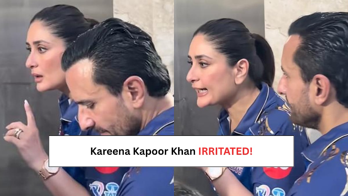 Actress Kareena Kapoor Khan arrived at Wankhede Stadium in Mumbai on Sunday evening (April 12) for the Mumbai Indians vs Royal Challengers Bengaluru match. She was accompanied by her husband-actor Saif Ali Khan, sons Taimur Ali Khan and Jehangir Ali Khan, and step-son Ibrahim Ali Khan. Several videos of the Khan family have gone viral on social media, showing them dressed in Mumbai Indians jerseys and proudly flaunting their support. However, one clip has also caught attention, showing Kareena getting into an argument.