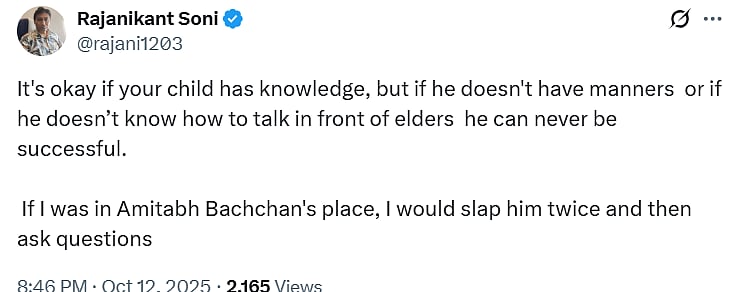 Netizens are quite upset with the kid’s behaviour. A netizen tweeted, “It's okay if your child has knowledge, but if he doesn't have manners or if he doesn’t know how to talk in front of elders he can never be successful. If I was in Amitabh Bachchan's place, I would slap him twice and then ask questions (sic).”