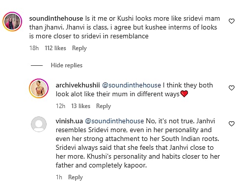 “Is it me or Kushi looks more like sridevi mam than jhanvi. Jhanvi is class, I agree but kushee interms of looks is more closer to sridevi in resemblance,” wrote one user.