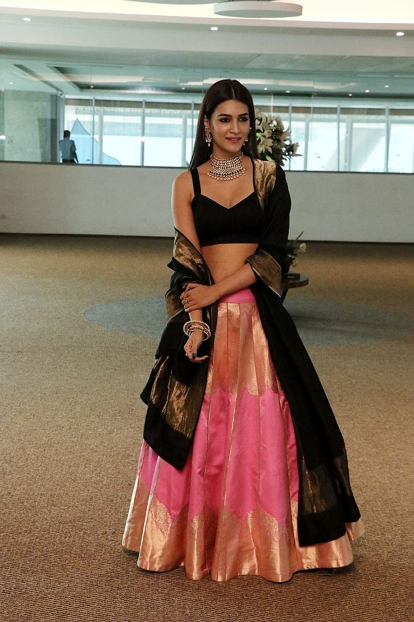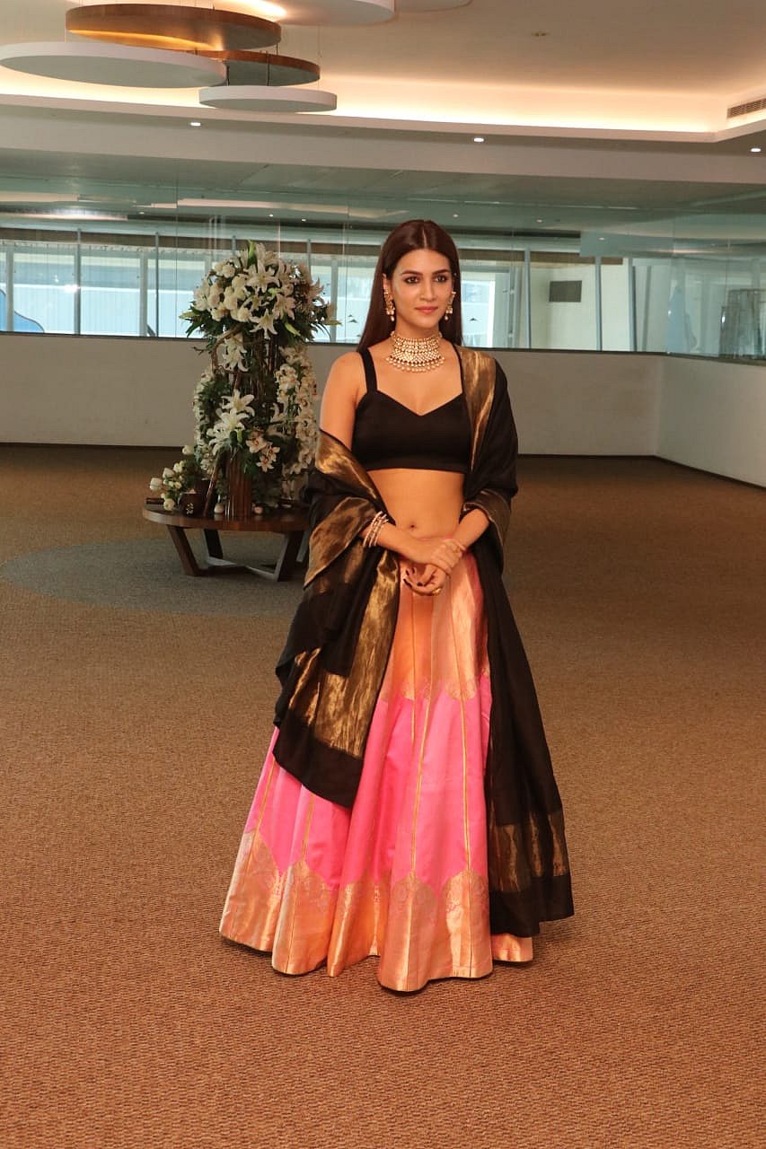 'Lukka Chuppi' actress Kriti Sanon stunned everyone today as she arrived at the trailer preview of her next periodical drama 'Panipat' with Arjun Kapoor at Sanjay Dutt. "Panipat" is Kriti's first historical period drama and she is excited about the project.