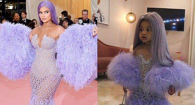 The 22-year-old star shared a picture of her 20-month-old daughter where she can be seen recreating Jenner's this year's Met Gala look.