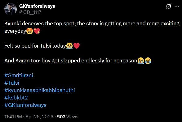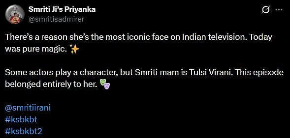 One more netizen tweeted, "There’s a reason she’s the most iconic face on Indian television. Today was pure magic. ✨ Some actors play a character, but Smriti mam is Tulsi Virani. This episode belonged entirely to her (sic)." Check out the comments below...