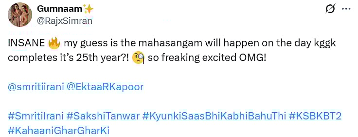 One more netizen tweeted, “INSANE 🔥 my guess is the mahasangam will happen on the day kggk completes it’s 25th year?! 🧐 so freaking excited OMG! (sic).” Check out the comments below…