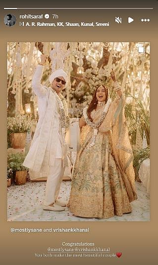 Two days after the wedding, Rohit took to his Instagram story and re-shared Prajakta and Vrishank joint post, featuring their wedding photos, and wrote, "Congratulations, you both make the most beautiful couple," along with a red heart emoji.