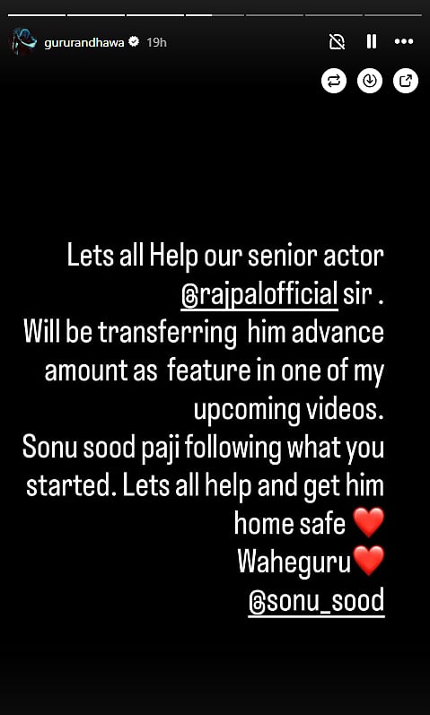 Taking to his Instagram stories, the singer wrote, "Lets all Help our senior actor @rajpalofficial sir. Will be transferring him advance amount as feature in one of my upcoming videos. Sonu sood paji following what you started. Lets all help and get him home safe."
