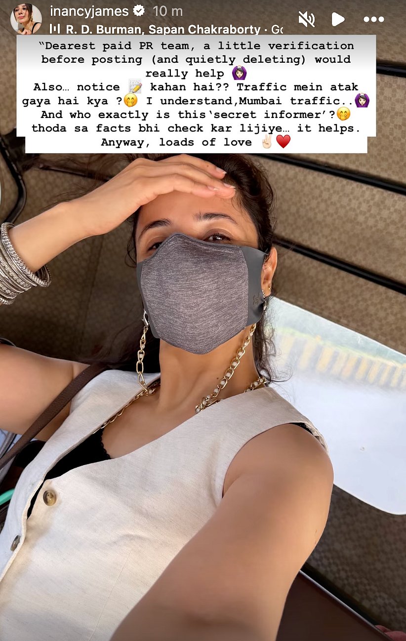 Amid the reports, Muskaan reacted and took to her Instagram Story on Saturday, April 11, humorously taking a dig at the claims, urging proper verification before spreading such news, and also denying receiving any such legal notice. She wrote, "Dearest paid PR team, a little verification before posting (and quietly deleting) would really help. Also... notice gaya hai kya? I understand, Mumbai traffic.. And who exactly is this 'secret informer'? kahan hai?? Traffic mein atak thoda sa facts bhi check kar lijiye... it helps. Anyway, loads of love."