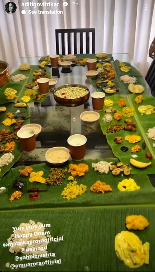 Aditi Govitrikar, who also attended the special lunch, shared a video of the food spread across the dining table. The food was served on a banana leaf for everyone as a tradition. Malaika's close friends Vahbiz Mehta and Delnaz Daruwala were also seen at the lunch.