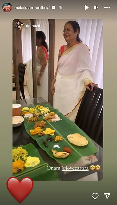 On the occasion of Onam today, Malaika Arora hosted a special lunch for her friends at her mother Joyce Arora's residence, and her sister Amrita Arora was also a part of it. The lavish Onam sadya was prepared by their mother.