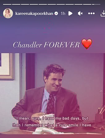 Taking to Instagram Story, Kareena Kapoor Khan dropped a picture of Matthew Perry from his 'Friends' sitcom, in which he essayed the iconic role of Chandler Bing.