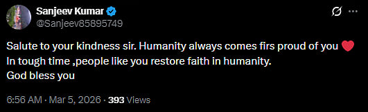 Another X user wrote, "Salute to your kindness sir. Humanity always comes firs proud of you In tough time ,people like you restore faith in humanity. God bless you (sic)." One more netizen tweeted, "No nationality. No conditions. Just humanity. This is the world we need more of. Respect for this initiative (sic)." Check out the tweets below...