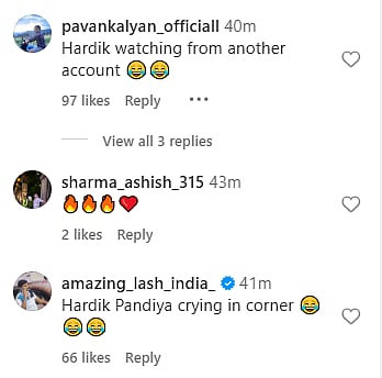 Another user commented, "Hardik Pandya crying in the corner."