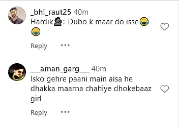 Some users stated that Hardik is having a watch on the two, while others slammed Alex for posting such a video. One of the users wrote, "Hardik watching from another account."