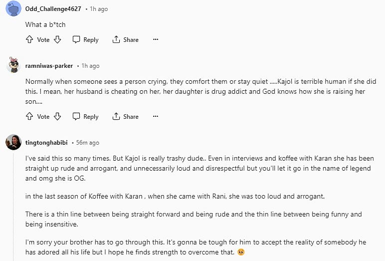 Further, the user added, “All he wanted to say was that Kajol brought him a lot of happiness and that he wished the best for her future. My brother was overwhelmed and started crying, but all she did was say ‘hogaya? Ab nautanki ban karo aur bill loh!’ And she complained to the manager about employing people like him. With the bottom of my heart, fu*k you Kajol. You couldn’t even say thank you. It’s not like he interrupted you while eating.”