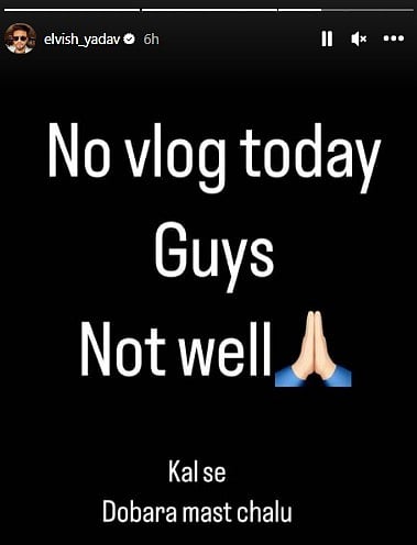 Hours after the interrogation, Elvish wrote on his Instagram story, "No vlog today guys, not well. Kal se dobara mast chalu," and added a folded hand emoticon.