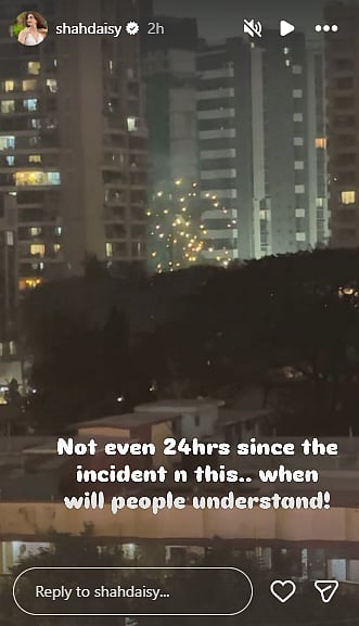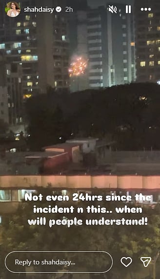 On Tuesday, the flat next to Daisy Shah's house in Bandra, Mumbai, caught fire as members of a political party were bursting crackers while campaigning for the BMC elections 2026. The actress shared the video of the same on Instagram. Now, on Wednesday, Daisy took to her Instagram story to share another video, in which crackers are being burst near her house. However, it is not known whether a political party is bursting the crackers, or if there's any other occasion.