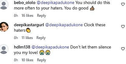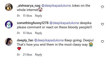 Another Instagram user commented, "Keep going, Deepu! That’s how you end them in the most classy way (sic)." One more netizen commented, "@deepikapadukone You should do this more often to your haters. You do good (sic)."