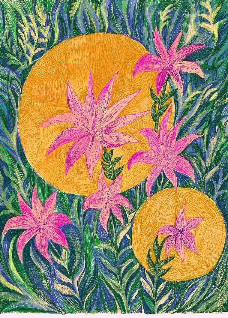A gold medalist, who has majored in Typography and Colours, Ashwiny admits that as art turned from passion to profession, the little books she carried around with a box of colours and brushes, lay forgotten in a box. She stumbled upon them and her sketches while cleaning out cupboards during the lockdown and felt the need to revive her core strength. “I started with line drawing of plants since I love nature and botanical art became a way of life for me over the next six months. Then, observing that many artists were creating digitally, I started doodling on my iPad every day for two hours. I recalled my mother marveling at how I could patiently sit for hours and just paint and wanted to go back to the process of creating without any deadlines or rules,” she shares.