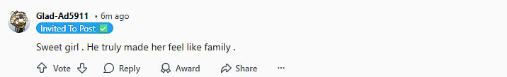 A Reddit user commented, "If they are dating, I just know who's a giver in their relationship (sic)." Another netizen wrote, "Sweet girl. He truly made her feel like family (sic)."