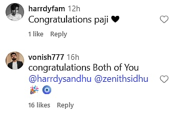 Fans Congratulate Harrdy Sandhu And Zenith Sandhu