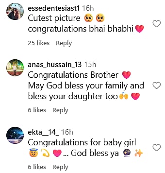 A fan commented, "Cutest picture 🥺🥺 congratulations bhai bhabhi (sic)." While Harrdy has not revealed the gender of the baby, an Instagram user wrote, "Congratulations Brother ❤️ May God bless your family and bless your daughter too (sic)."