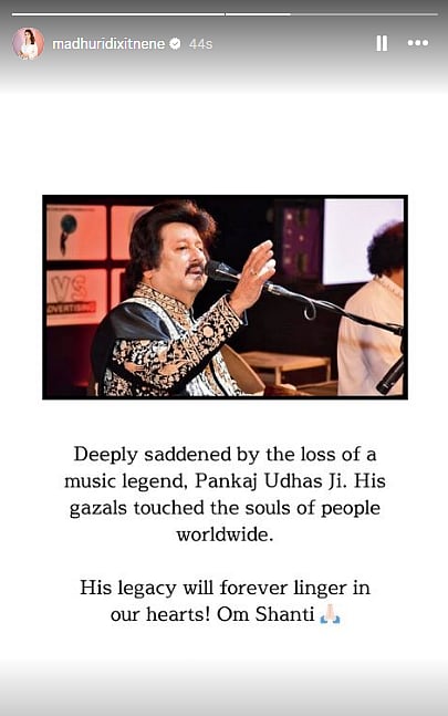Abhishek Bachchan wrote on X, "Very saddened by Pankaj Udhas ji's passing. His demise is an irreplaceable loss to our music world. My sincere condolences to his family and friends in this difficult time. Om Shanti. 🙏🏽"