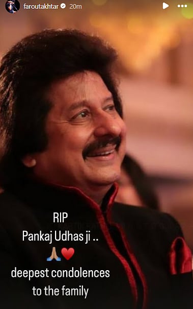 The singer breathed his last at a private hospital in Mumbai around 11 am on Monday. His daughter Nayaab Udhas shared a statement on Instagram to inform about his demise. "With a very heavy heart, we are saddened to inform you of the sad demise of Padmashri Pankaj Udhas on 26th February 2024 due to a prolonged illness," the statement read.