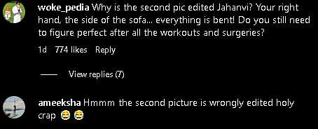Another person commented on the slimness of Janhvi's legs, comparing them to horse legs and questioning the need for editing after following strict diets.