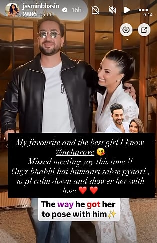 Not just Aly, Jasmin also took to her Instagram Stories to clarify the situation. She wrote, "My favourite and the best girl I know. Missed meeting you this time!! Guyys bhabhi hai humaari sabse pyaari, so pl calm down and shower her with love."