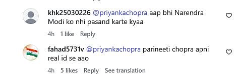 Replying to PeeCee's comment, a netizen wrote, "@priyankachopra iski apni he party ne isko kyu nikaala ??? (sic)." Another Instagram user wrote, "@priyankachopra aap bhi Narendra Modi ko nhi pasand karte kyaa (sic)."