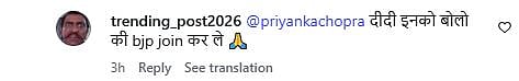 One more netizen commented, "@priyankachopra दीदी इनको बोलो की bjp join कर ले 🙏 (sic)." Check out the comments below...