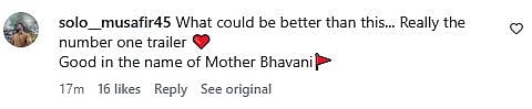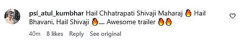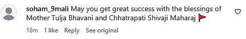 One more netizen commented, "May you get great success with the blessings of Mother Tulja Bhavani and Chhatrapati Shivaji Maharaj (sic)." Check out the comments below...