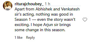 One more netizen commented, “Apart from Abhishek and Venkatesh sir's acting, nothing was good in Season 1 — even the story wasn't exciting. I hope Arjun sir brings some change in this season (sic).” Check out the comments below…