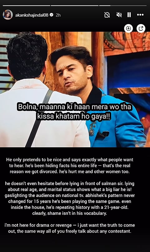 On a concluding note, Akanksha wrote, "I'm not here for drama or revenge - I just want the truth to come out, the same way all of you freely talk about any contestant."