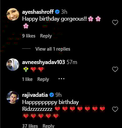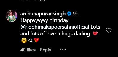 Archana's comment read, "Happyyyyyy birthday @riddhimakapoorsahniofficial Lots and lots of love and hugs, darling."