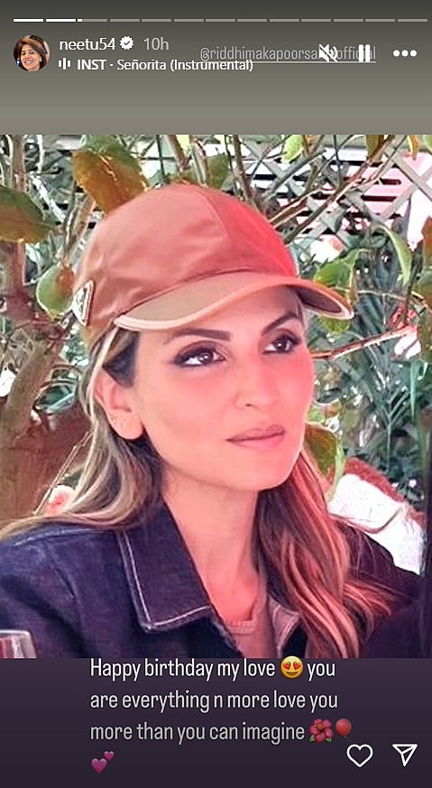 Neetu also shared pictures of Riddhima Kapoor on her Instagram story on her birthday. In one of the photos, Riddhima looks beautiful in a blue shirt sporting an orange-brown cap. "Happy birthday, my love. You are everything and more. Love you more than you can imagine."