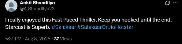 Faruk Kabir, who is known for making movies like Allah Ke Banday and the Khuda Haafiz franchise, has directed Jio Hotstar's new series Salakaar. The web series stars Naveen Kasturia and Mouni Roy in the lead roles, and it has started streaming today (August 8, 2025). A lot of people have already watched it and they have shared their review on X (Twitter).