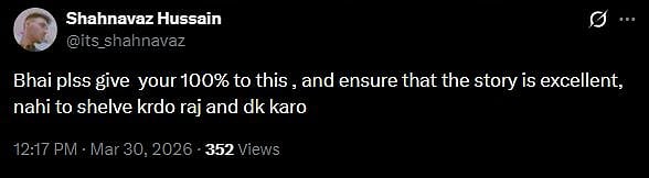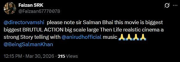 Reacting to the announcement of Salman's new movie, a fan tweeted, "This is wat we were being waiting for.... Bhaiiiii (sic)." Another fan tweeted, "Bhai plss give your 100% to this, and ensure that the story is excellent, nahi to shelve krdo raj and dk karo (sic)."