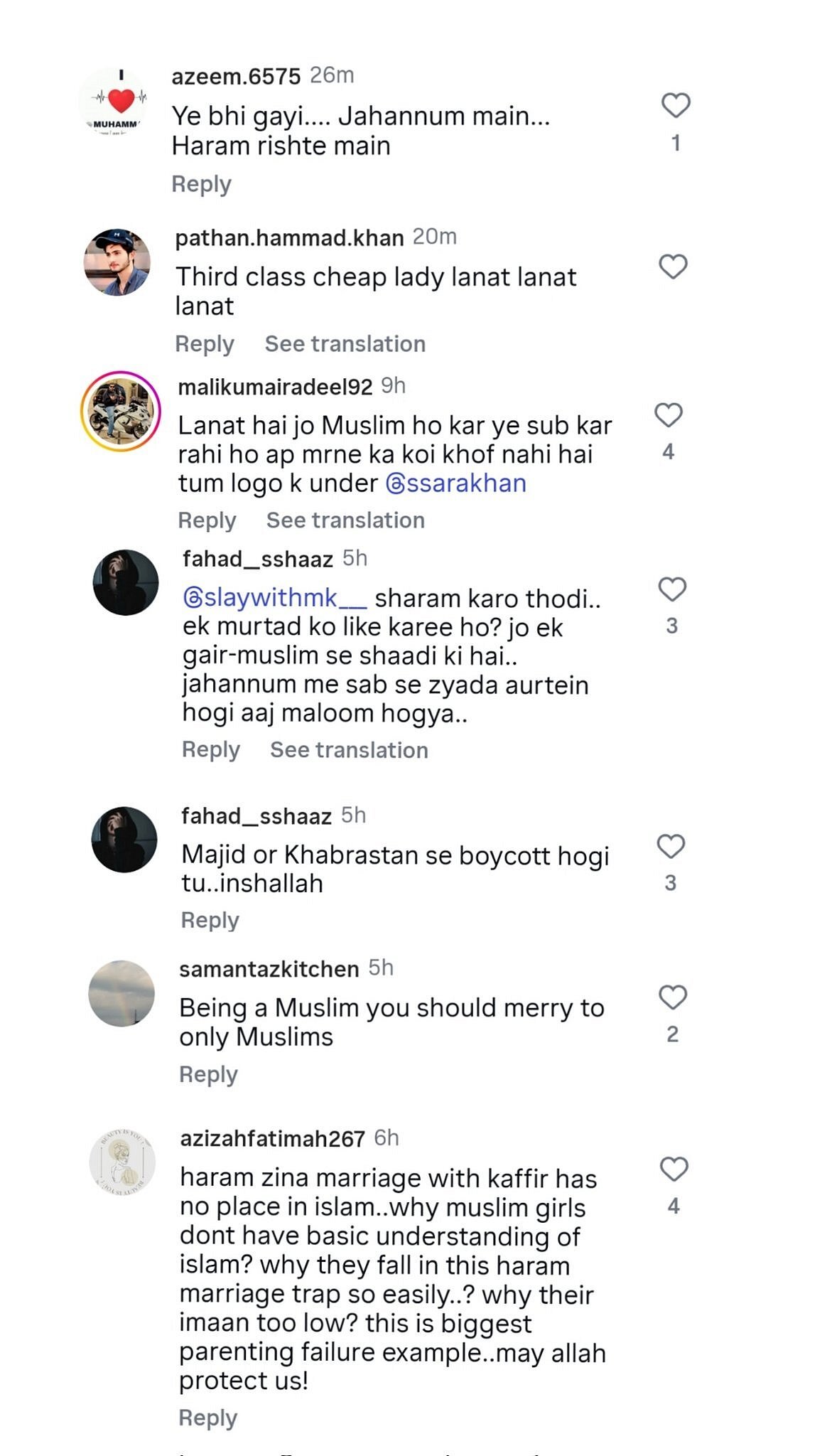 "Ye Hindu Muslim shadi kaise ho sakti hai agar koi ek partner bhi Hindu ho USKO Islam qabol karna farz hai for the nikkah otherwise wo nikkah jaiz hi nahi," another comment read.