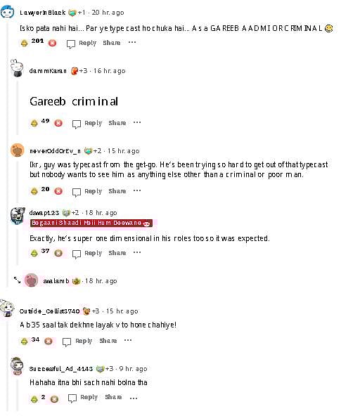 "He himself is getting typecasted in either small town comedies or gangster roles," one user observed.
