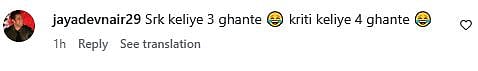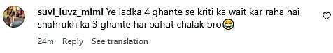 Another Instagram user wrote, "Srk keliye 3 ghante 😂 kriti keliye 4 ghante (sic)." One more netizen commented, "Ye to vahi hai jo Shahrukh ko uncle bol raha tha!! Papparazi ka hi baccha hai kya ye? (sic)." Check out the comments below...