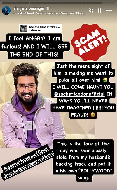 Lashing out at them, the singer added, "I am asking all my fellow musicians and artists to shame this music director and the entire joker T-series music company! How dare you guys even do this?! If you can't make music then don't steal it you useless buggers! Shame on you guys. Shame shame shame! Sachet Tandon I am speaking directly to you, you shameless filthy thief! How dare you not even ask for the rights from my husband?! You thief! Go to hell."