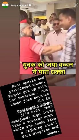 The Emergency actress wrote, "Most spoilt and privileged woman. People put up with her tantrums / non sense just because she is @amitabhbachchan ji's wife. That samajwadi topi looks like a rooster comb, while she looks like a fighting cock!! Shame. Such disgrace and shame (sic)."
