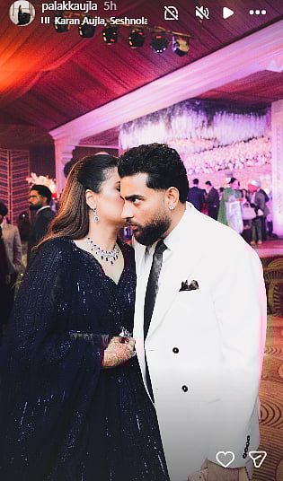Amid the ongoing controversy, Karan has remained silent on the matter. However, his wife, Palak Aujla, shared her first Instagram post since the allegations surfaced. On Tuesday, January 13, she took to her Instagram Stories to post a loved-up photo with her husband, in which she is seen planting a kiss on his cheek.