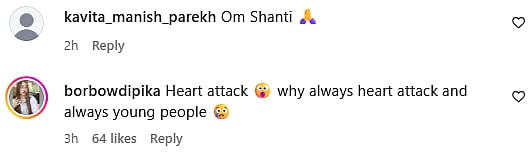 One more netizen commented, "Heart attack 😮 why always heart attack and always young people (sic)." Check out the comments below...