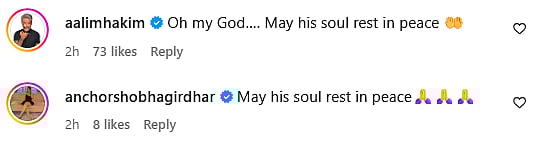 Hairstylist Aalim Hakim commented on Viral Bhayani's post, "Oh my God…. May his soul rest in peace (sic)." Another Instagram user commented, "May his soul rest in peace (sic)."