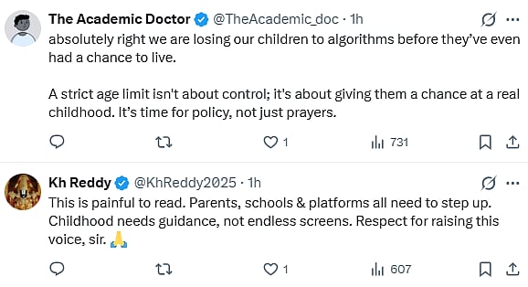 Another X user wrote, "This is painful to read. Parents, schools & platforms all need to step up. Childhood needs guidance, not endless screens. Respect for raising this voice, sir (sic)."