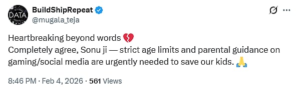One more netizen tweeted, "Heartbreaking beyond words Completely agree, Sonu ji — strict age limits and parental guidance on gaming/social media are urgently needed to save our kids (sic)." Check out the tweets below...
