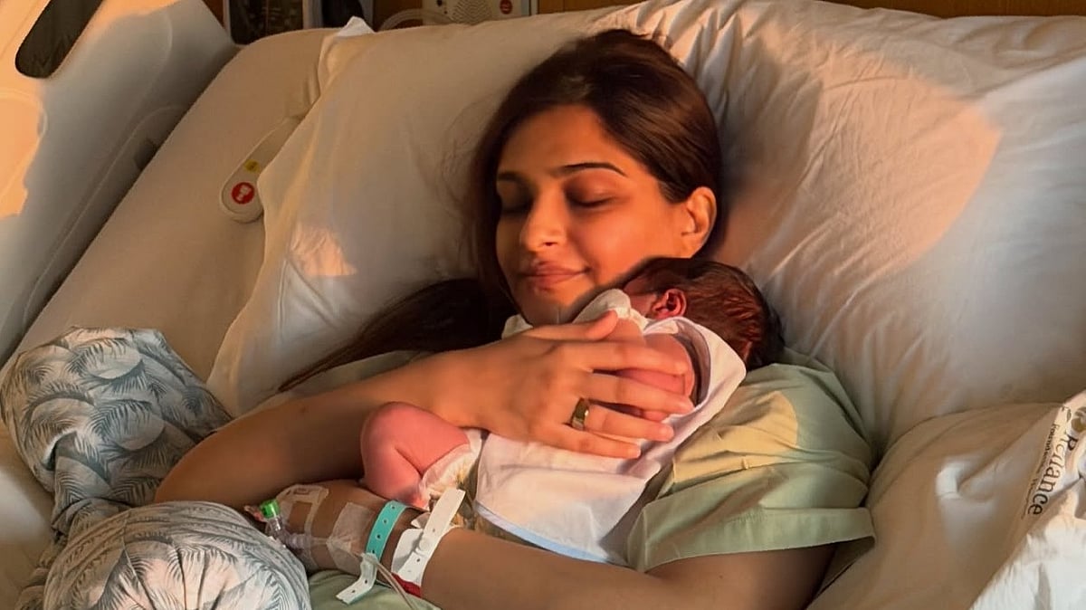 On Friday (April 3), Sonam posted her first picture with the newborn on social media. The photo, taken at the hospital, shows the actress lovingly cradling the baby in her arms.