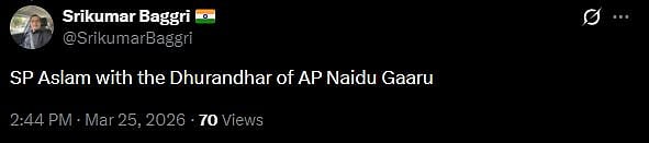 Netizens have, as always, shown their creativity on X, and have hilariously reacted to the pictures. A netizen tweeted, "SP Aslam with the Dhurandhar of AP Naidu Gaaru (sic)."